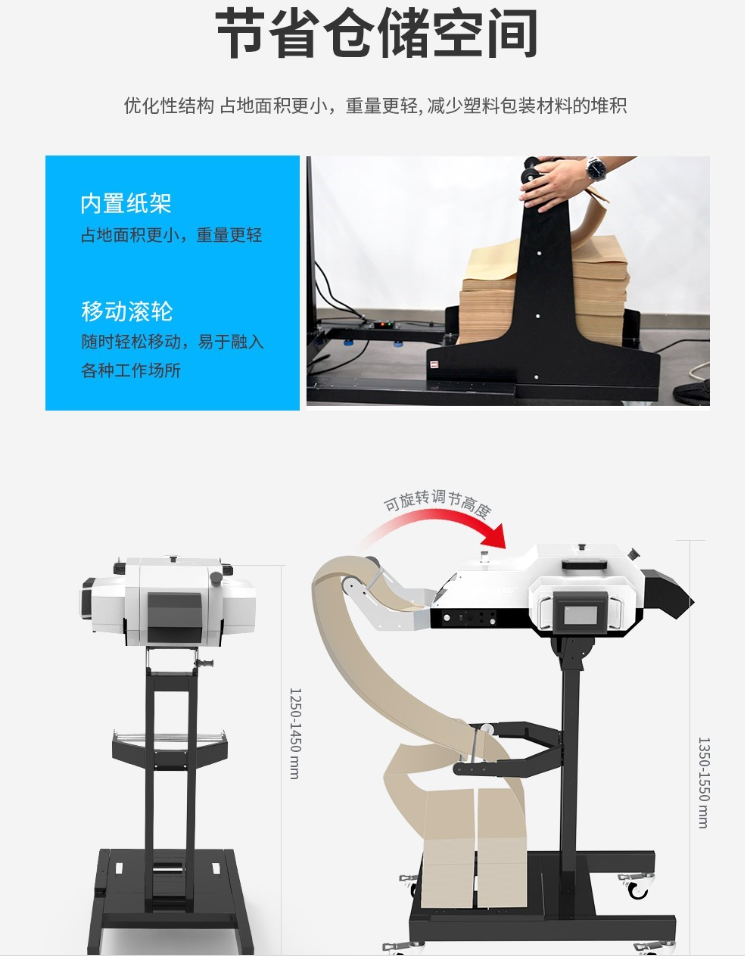 丙甲专利产品,C型侧开口气泡袋分配系统,无需风机即可将气泡袋吹至5米。智能分配气泡袋填充整个网兜。